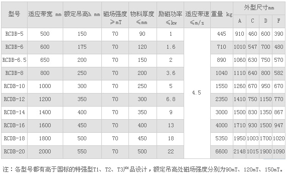 適用范圍: 適用破碎機(jī)前及輸送機(jī)膠帶上的任何物料除鐵,可適用于各種惡劣的環(huán)境條件。 技術(shù)特點(diǎn): 1、磁路采用計(jì)算機(jī)模擬設(shè)計(jì),透磁深度大,磁力強(qiáng)。 2、內(nèi)部采用電工專用樹(shù)脂澆注,自冷式全密封結(jié)構(gòu),防塵、防雨、耐腐蝕。 3、可有效吸除混雜在非磁性物料中0.1-35公斤的鐵磁性物質(zhì)。